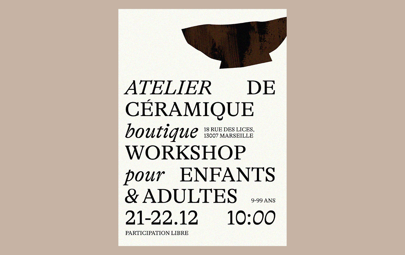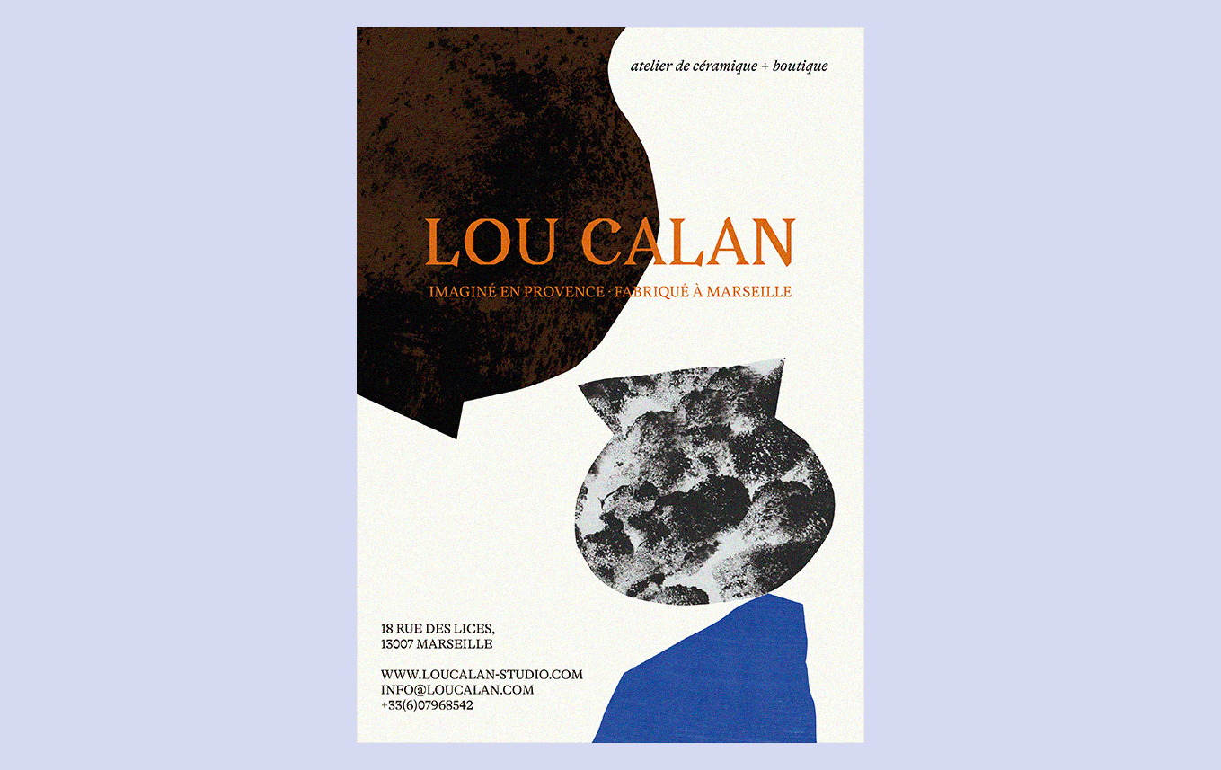 Lou Calan is a ceramic workshop and boutique in the heart of Marseille, where clay meets craftsmanship to create unique pieces. Blending tradition and contemporary style, the studio offers classes, creative workshops, and a welcoming shop. I designed the poster, business card, and pictograms, crafting a warm and cohesive visual identity that reflects the spirit of the space.